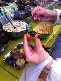 Hoje, Quarta-Feira, é dia de mercado em Chatelain, Bruxelas.Para além das normais bancadas de bugigangas, roupas, etc., aquilo que distingue o típico mercado flamengo são as iguarias: todo o tipo de queijos, patês, enchidos, tapenades, frutos ou vegetais, tudo o que se possa imaginar. Ao mesmo tempo a apresentação das montras é sempre charmosa e cuidada. Espalhadas pelo mercado estão também bancadas com provas de vinhos e comida pronta-a-comer. Um chique. Entretanto, hoje - graças ao que apanhámos no mercado - para jantar, após o Benfica, vamos ter: saladinha de polvo, azeitonas com basílico e alho, um chévre au lait cru, isto para as entradas, e uns tortelini au fromage trufée como prato principal. Não me parece mal. Para comprovar que afinal os bárbaros do Norte até se sabem tratar bem no que que concerne à culinária aqui fica a reportagem fotográfica da nossa ida ao mercado hoje.